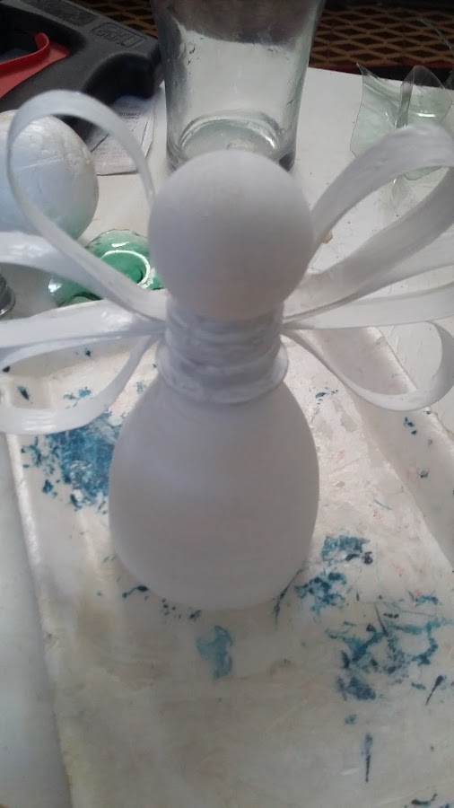 Luego, no me gustaba como se veía, así que hice una trenza de papel periódico y la usé para envolver alrededor del "cuerpo" y las alas y volví a pintar de blanco.