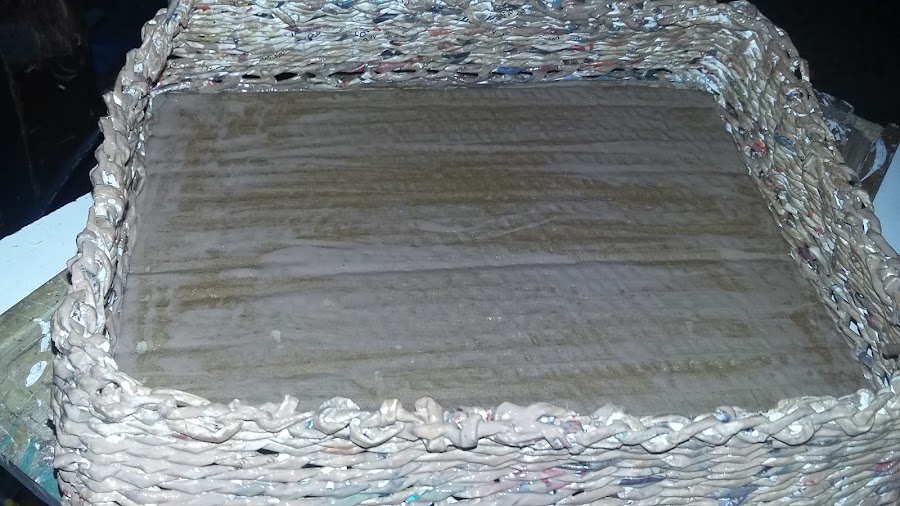 También lo pinté con la mezcla de cola blanca y café muy fuerte, no desperdicio café, es el que queda en el fondo de la cafetera al final del día y que ya no se va a tomar.