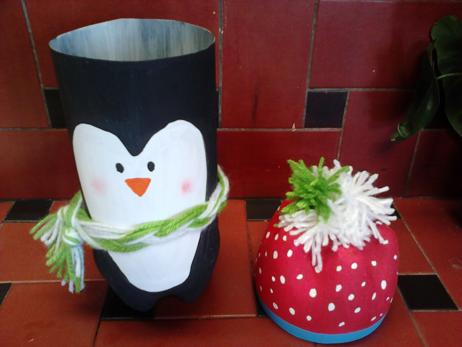 Vi esses pinguins de garrafa pet e resolvi fazê-los. O modelo da garrafa era diferente, mas tô nem aí...