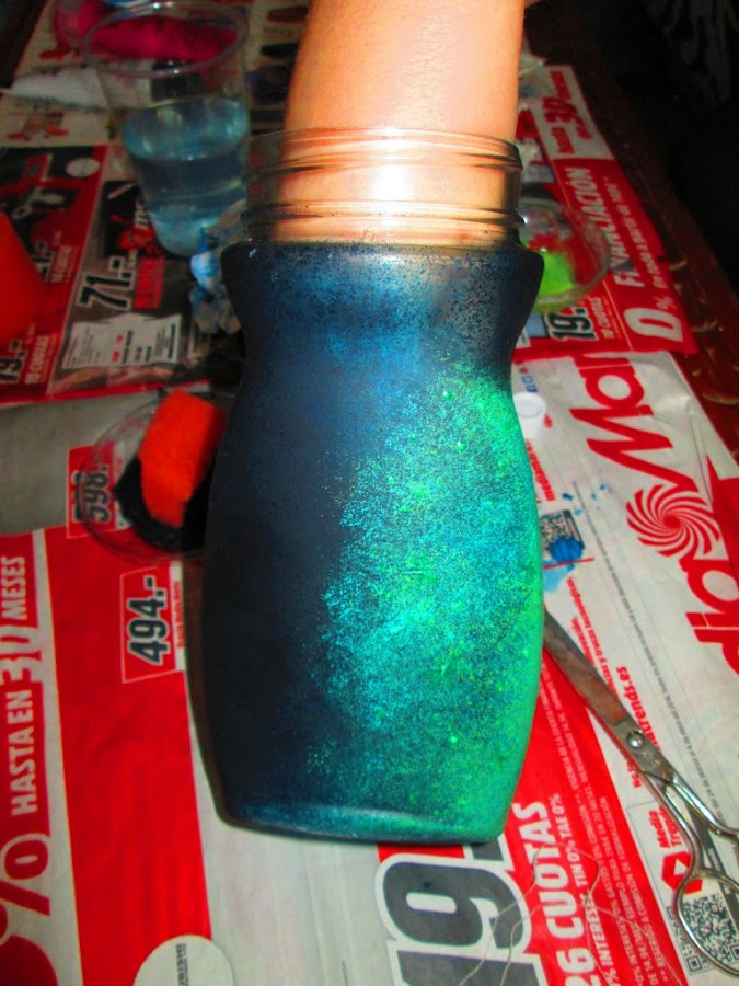 Luego, con pintura de color rosa y verde, le dí unos toques con esponja, para que quedase estilo nebulosa.