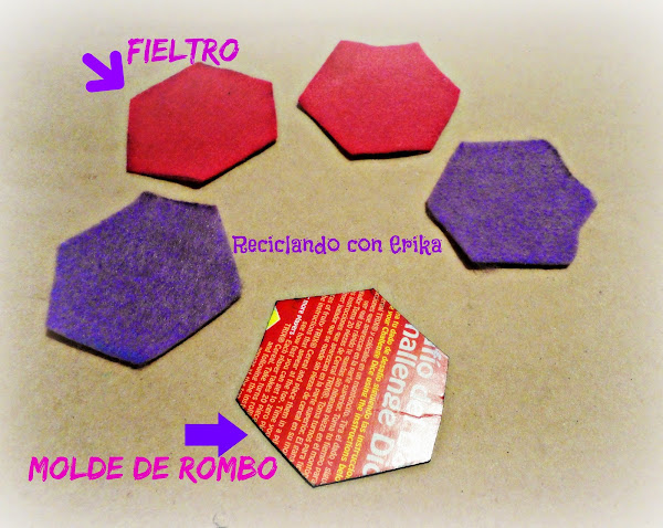 Recorta un rombo usando cartón , dibuja y recorta sobre fieltro de colores a tu elección .