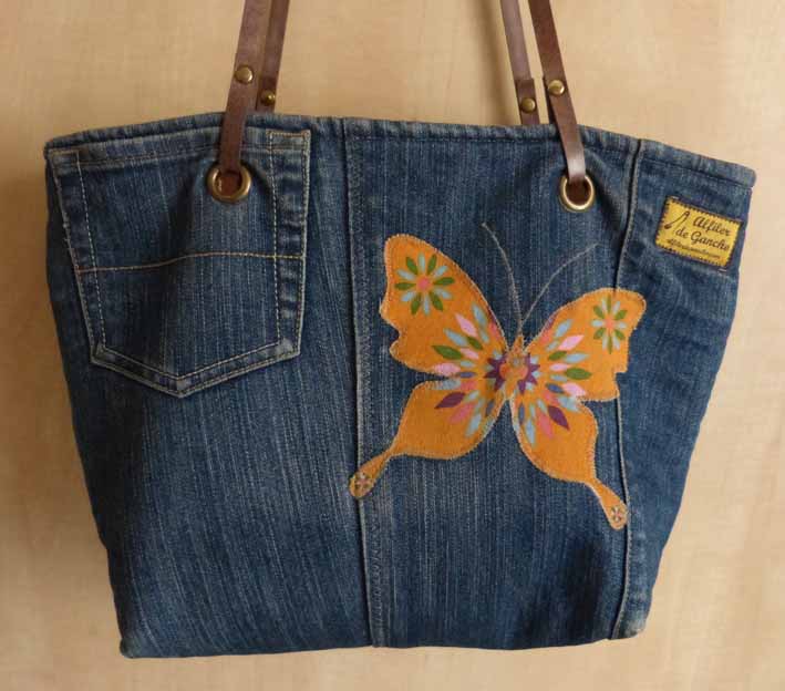 Este es uno de mis bolsos favoritos, confeccionado con uno de esos vaqueros "imposibles", este no me gustaba y por lo tanto estaba muy poco usado y casi nada deteriorado.