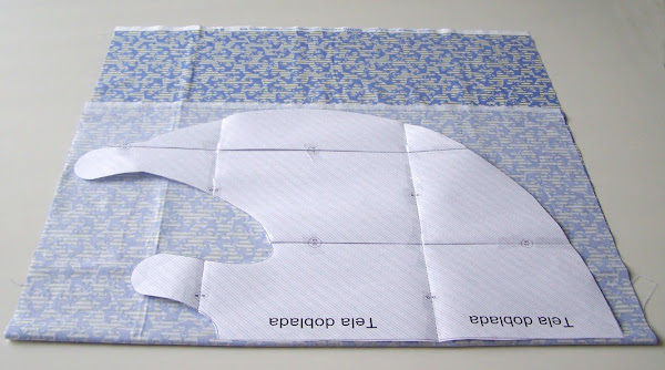3.Ahora colocamos la parte del patrón que no tiene costuras en la mitad, sobre el pliegue de la tela.