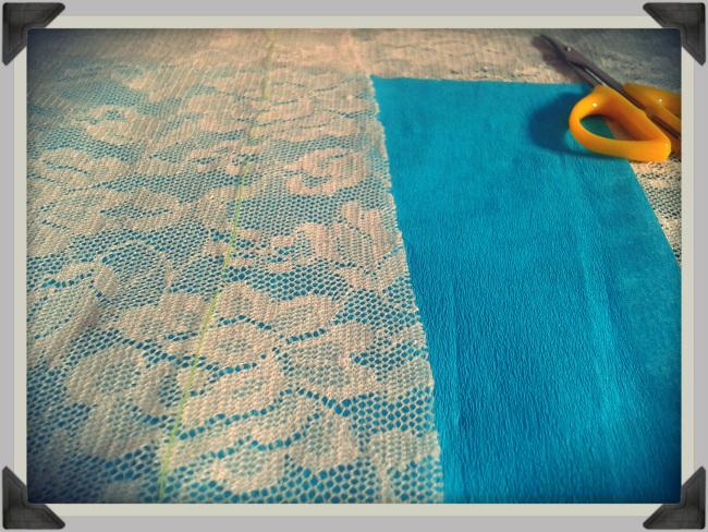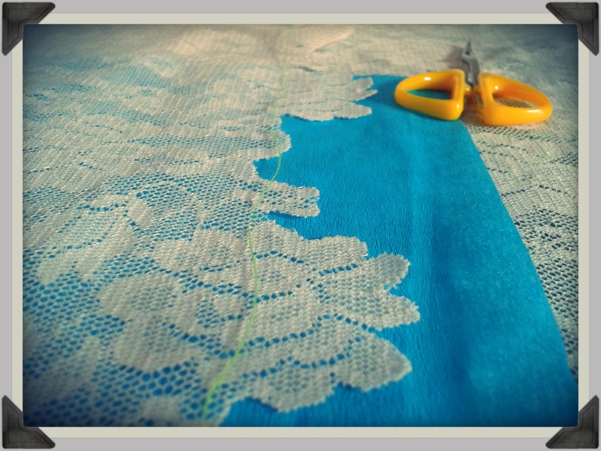No cortar dejando una costura recta como si fuera una tela, sino siguiendo los distintos motivos del encaje. Por el revés, cortar el excedente de la puntilla.