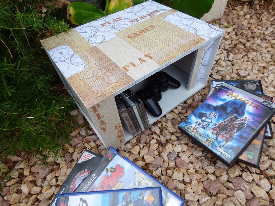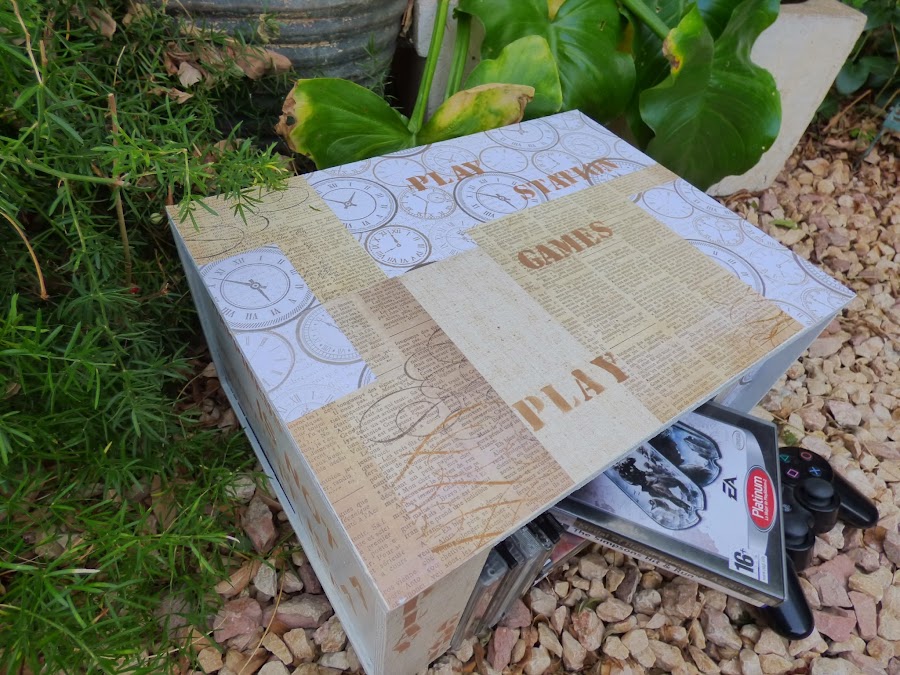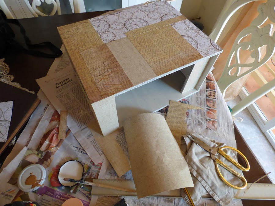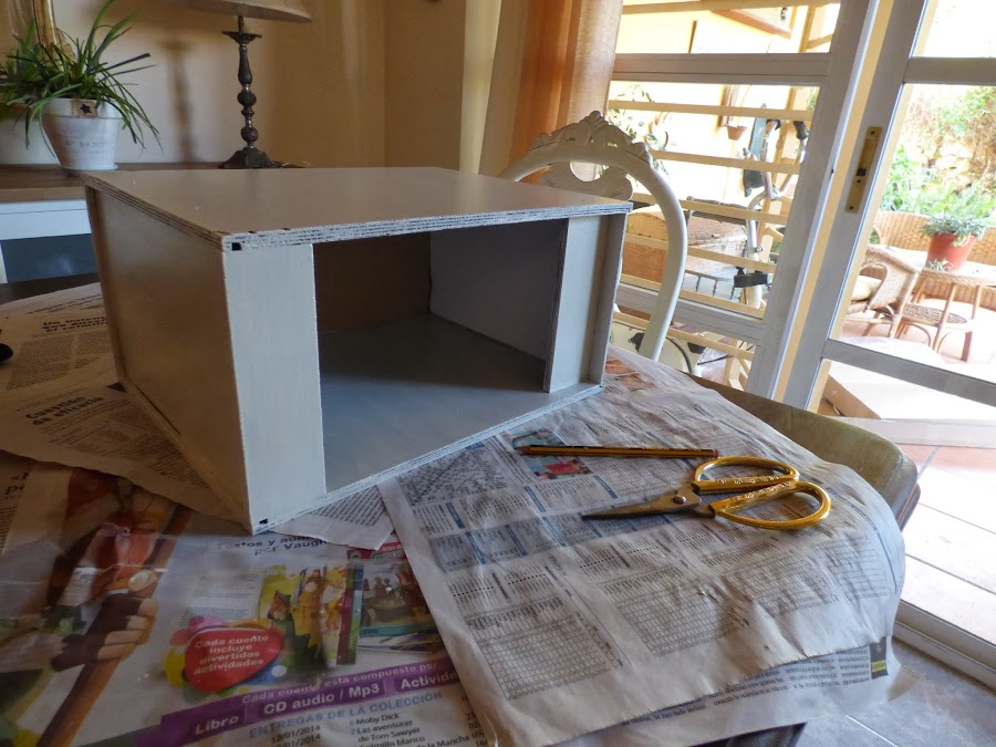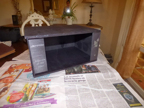 Entre tanta caja encontré este mueblecito por 1 euro que debió contener un par de botellas de vino...nada más verlo pensé en decorarlo para algo....