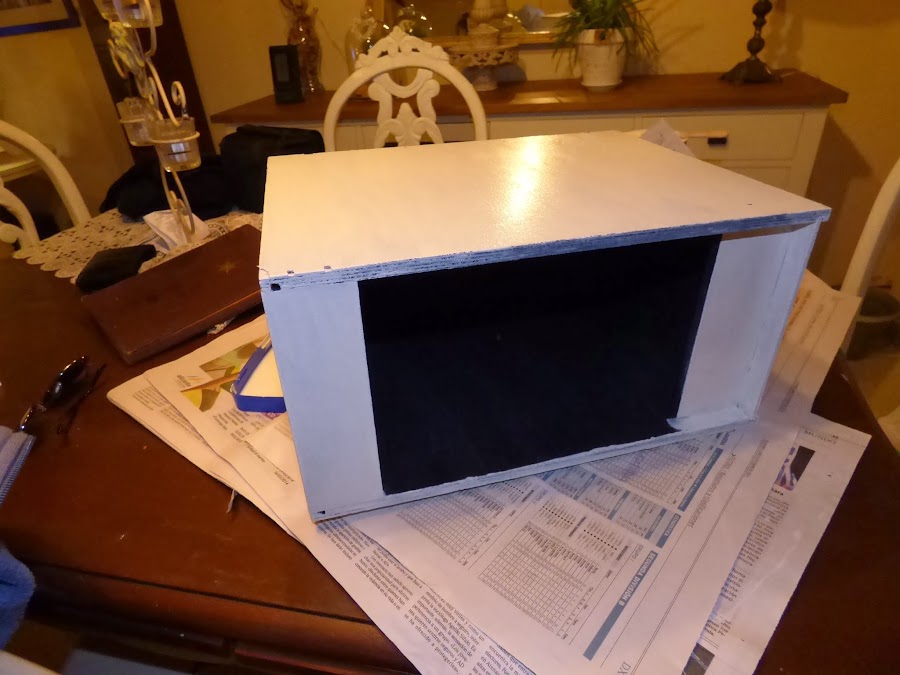 No me apetecía nada pintar el interior por lo incómodo que iba a ser, asi que pensé en forrar la cara del fondo y las de los lados....he utilizado un retal de goma eva y cartones de los que llevan las camisas recien compradas.