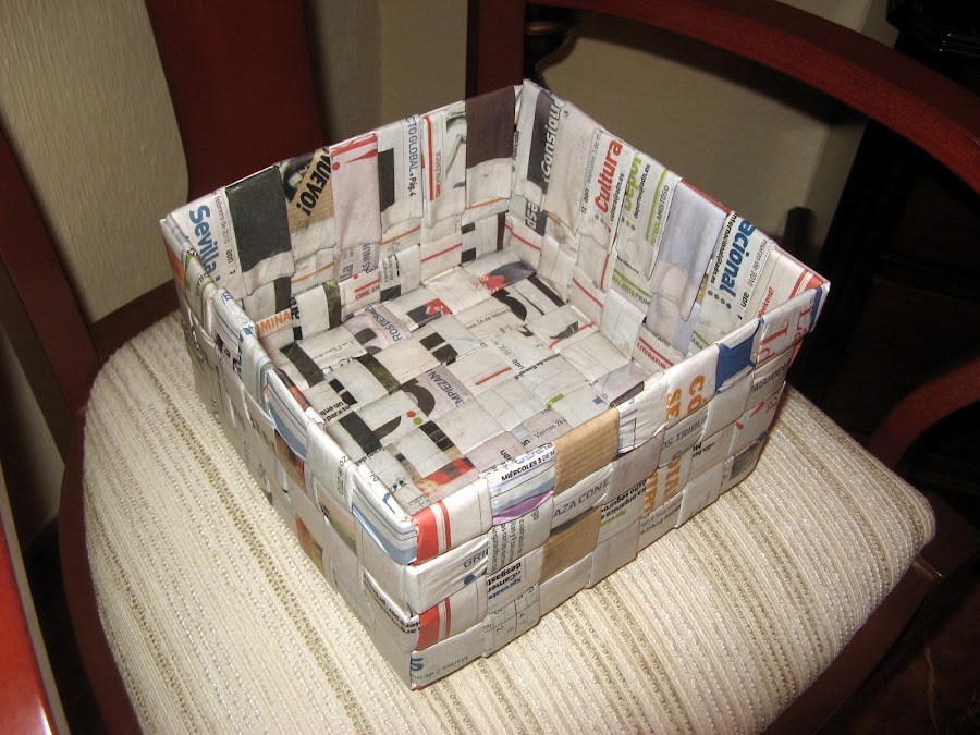De esta forma, hice una cesta de periódico, que para ser la primera, no quedó mal, aunque espero que si hago más en adelante queden mejor.