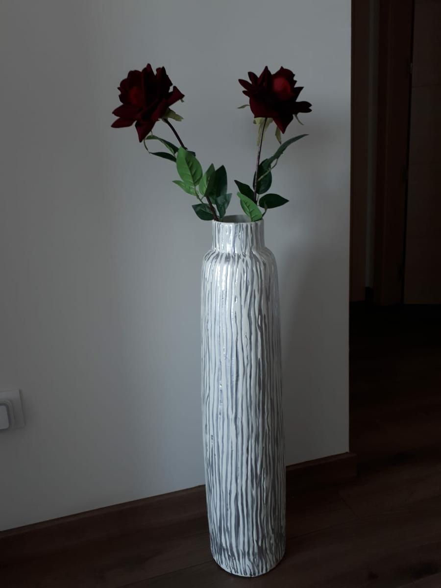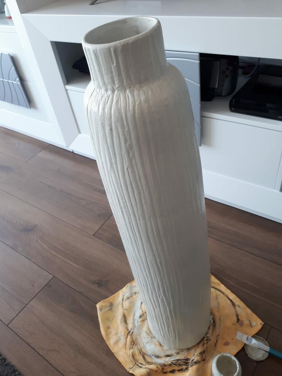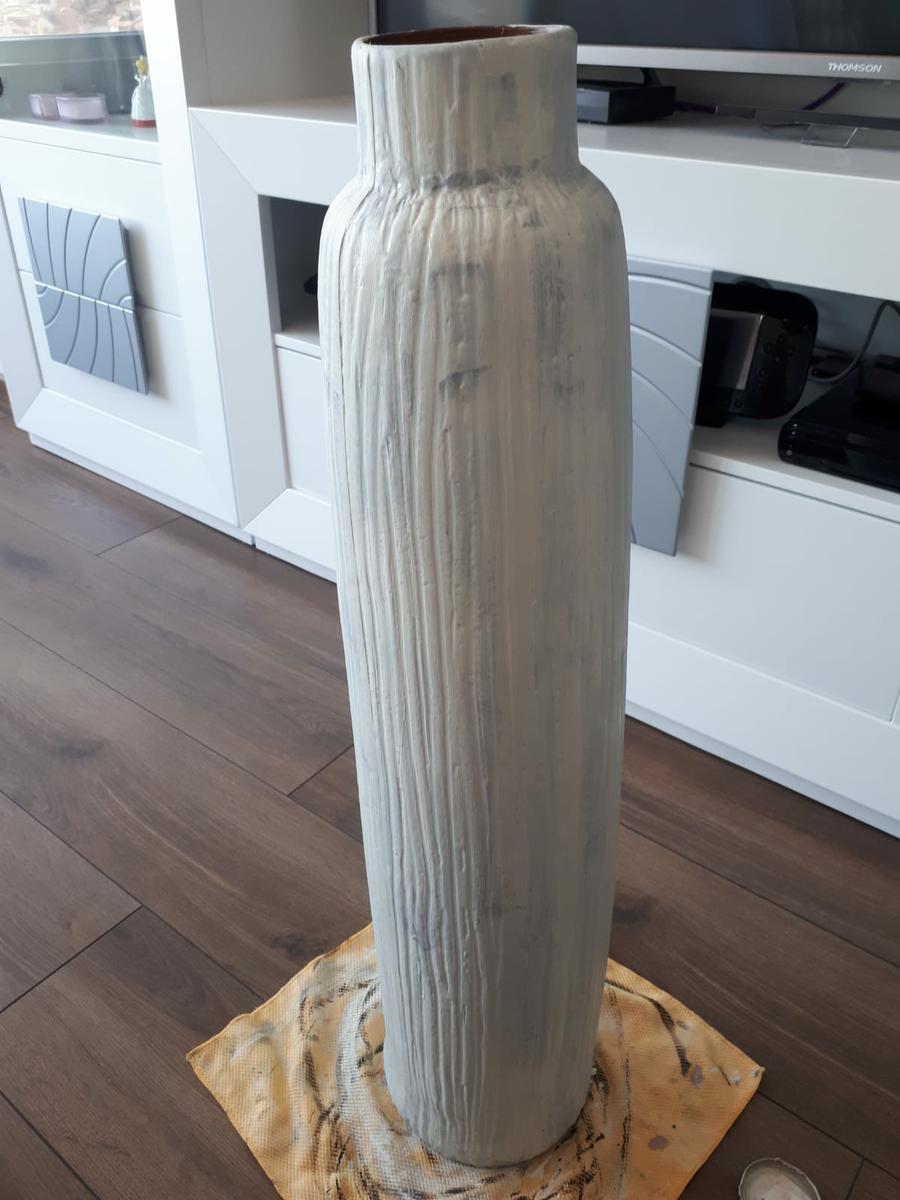 Como se puede apreciar ya no hay ni un ápice del color original del jarrón. Ahora todo está en un precio blanco Roto mate, con ese aspecto tan bonito que deja esta pintura. Ese efecto suave y tiza. Al tacto estoy más que segura que es bien suave y gustoso.