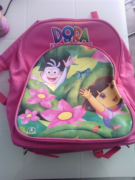 Esto era lo que tenía: mochila de Dora la Exploradora y una camiseta mía vieja (la tela estaba en perfecto estado).