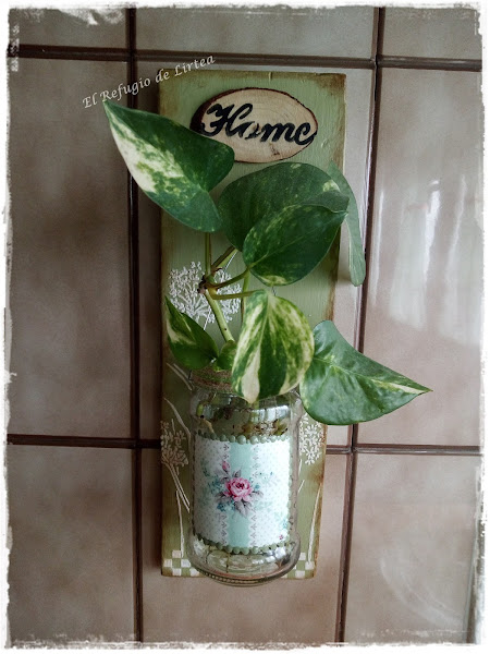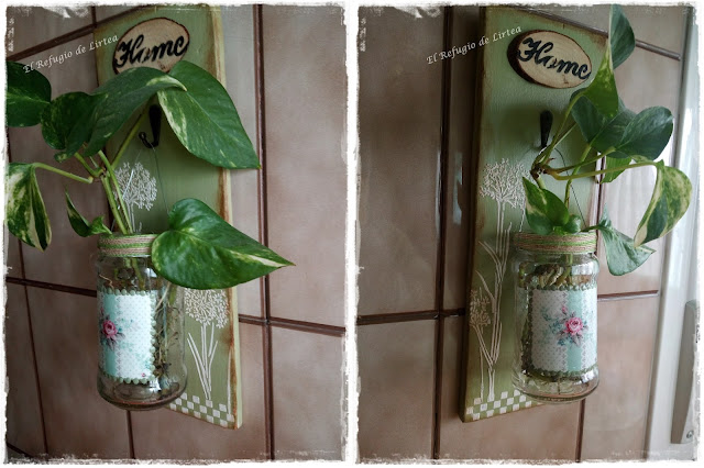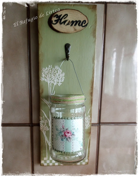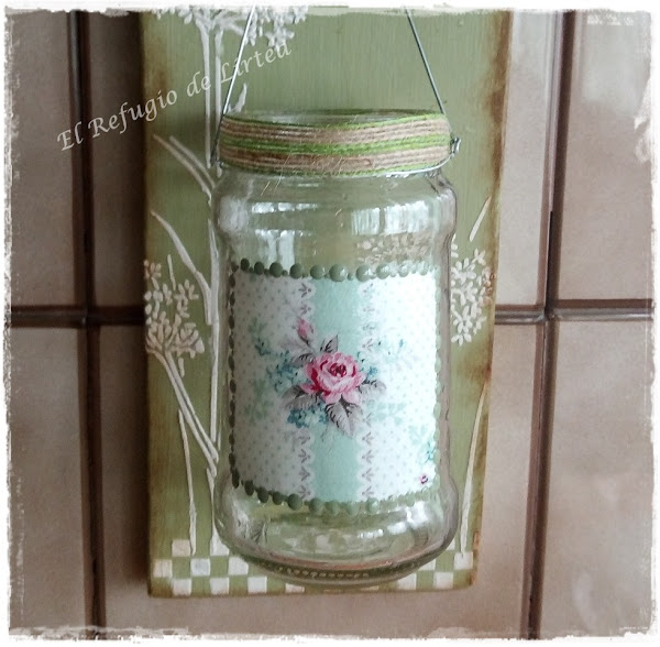 Sobre el bote de cristal hice un decoupage con un trocito de servilleta.