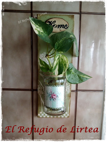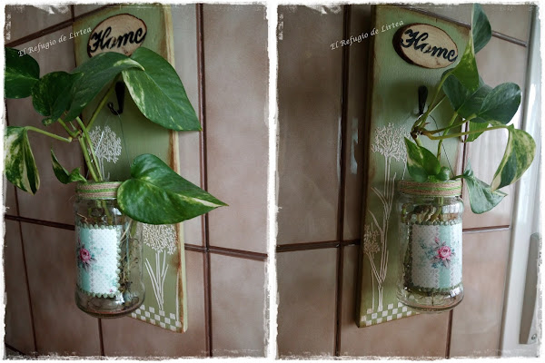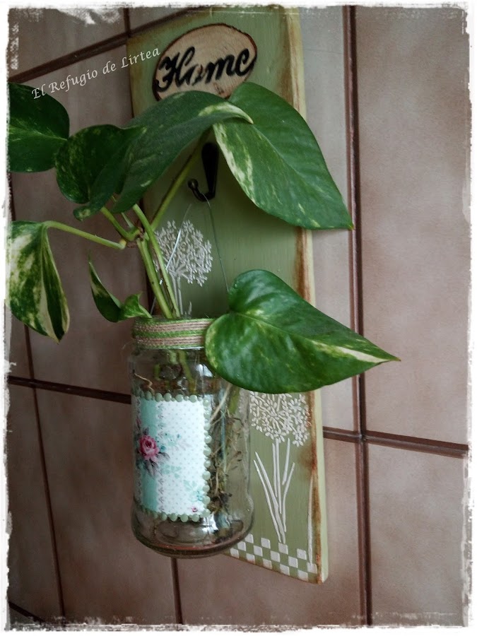 En este caso he puesto una pequeño poto, una planta que necesita pocos cuidados y que con un poco de agua desarrolla sus raíces y queda así de bonita.