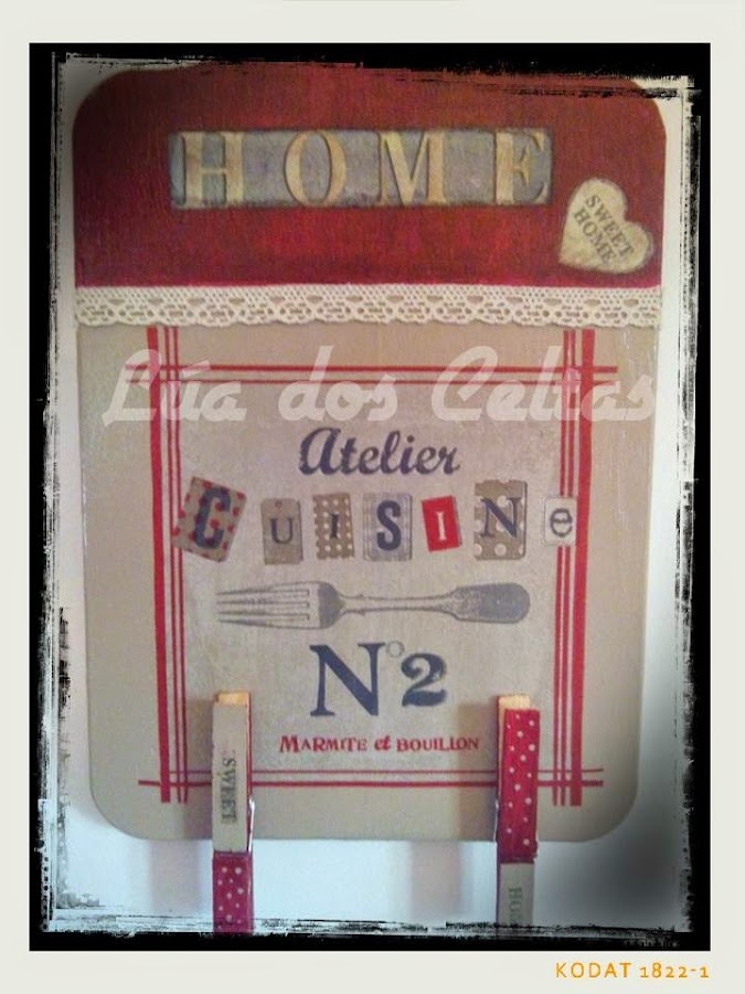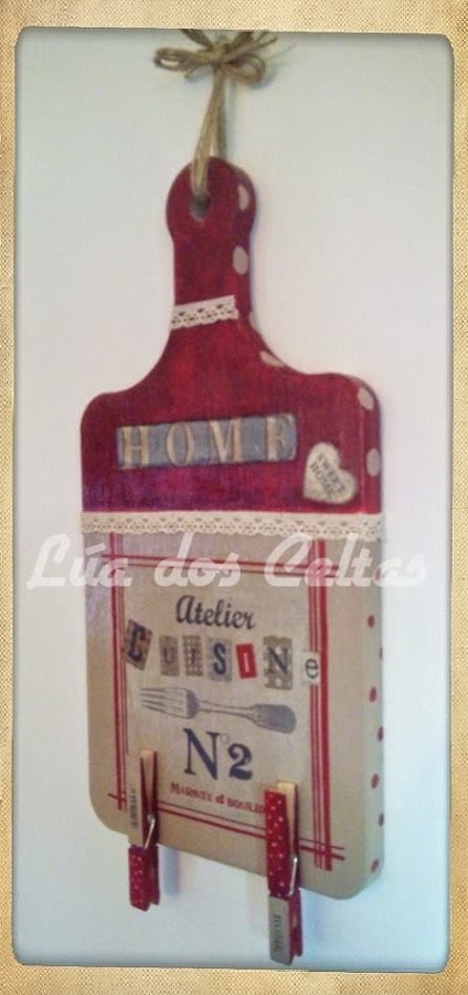 No pensé que me fuese a gustar tanto "tunear" un tablita de cortar...pero la verdad es que pienso hacer más porque le veo un montón de posibilidades...para colgar paños de cocina, o un par d ...