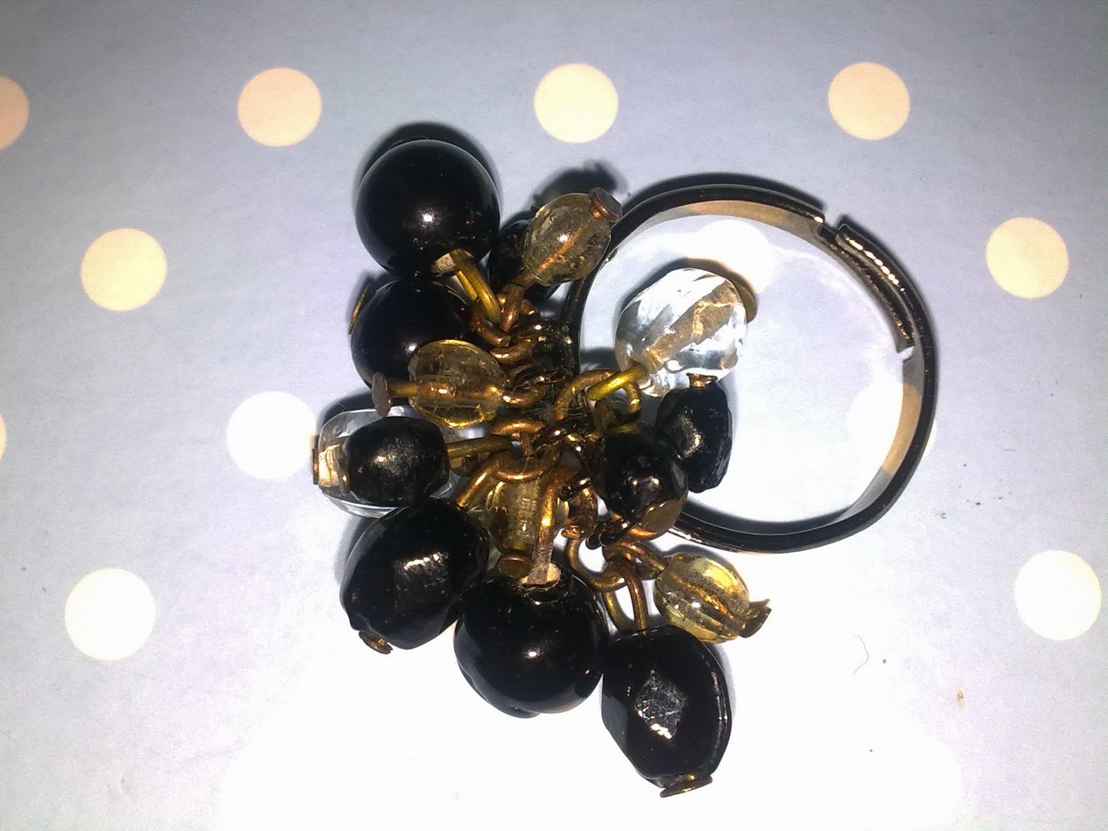 Tenía unos pendientes de una compi del cole sin arreglar hacía un tiempo y bueno me puse manos a la obra ayer. Resulta que le pesaban mucho porque llevaban muchos abalorios así que de unos pendientes he hecho dos pares de pendientes y un anillo a juego que espero le gusten! Aquí van las fotos! No son muy buenas porque las hice con el movil pero...