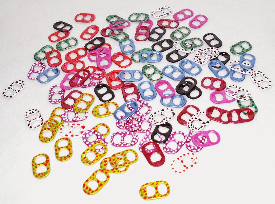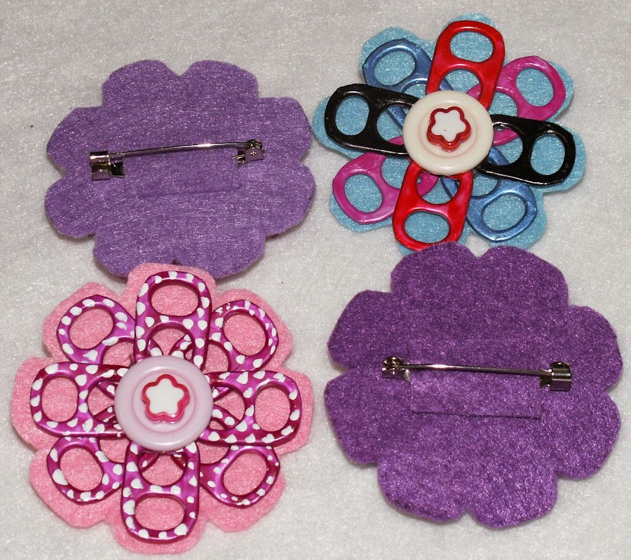 Hoy os quería mostrar los broches que he hecho con las anillas de las latas de refrescos. Este material reciclable tiene mil usos en manualidaes, desde hacer complementos como broches o pulseras hasta hacer bolsos, cortinas e incluso prendas de ropa... si, si... he visto hasta un corsé hecho con estas anillas, impresionante!