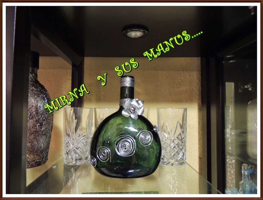 Me gusto esta botellita y solo le agregue algunos espirales de alambre y cordoncito plateado y la florecita que esta en la parte de arriba la saque de un trabajo de sonia de gustamonton... Saludos y si te gustan mis trabajitos regalame tu manita arriba en el tutorial