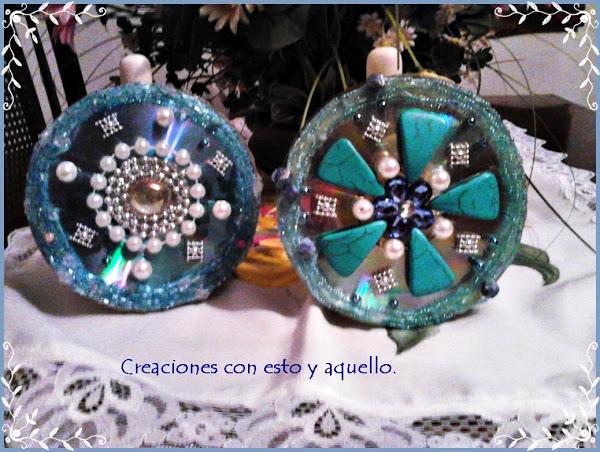 Cd. viejos, abalorios, restos de pulsera, silicona caliente y listo.