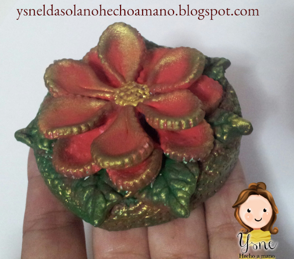 *Este trabajo es, totalmente de reciclaje, usé: Una flor que tenia reservada, porque pegué los pétalos malos. Restos de porcelana fría de color rojo de otro trabajo. Y un frasco de desecho.