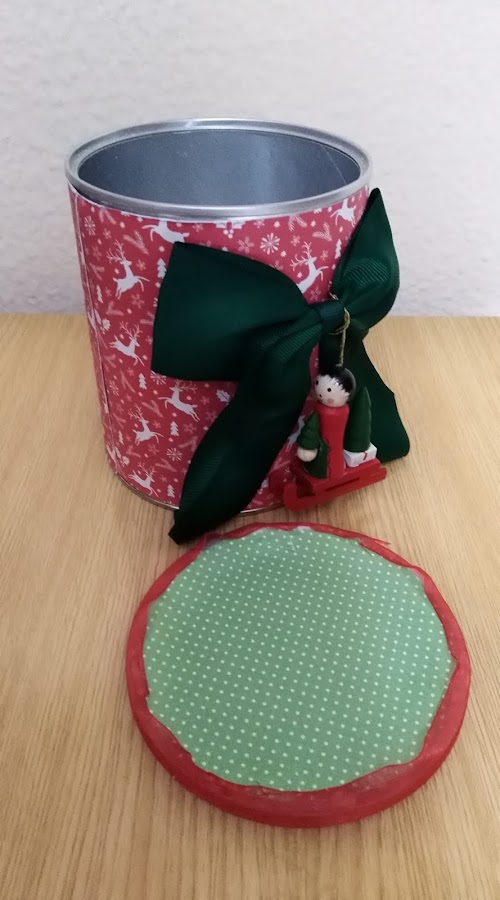 1.- Forramos la tapa con porcelana fría, de cualquier color, porque luego la pintaremos en verde. (Usar cola blanca para pegar)