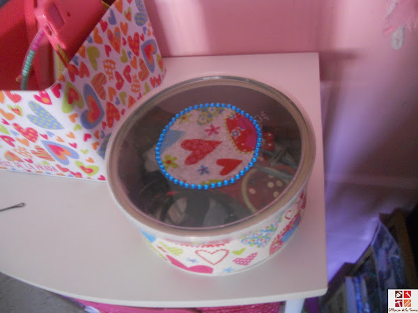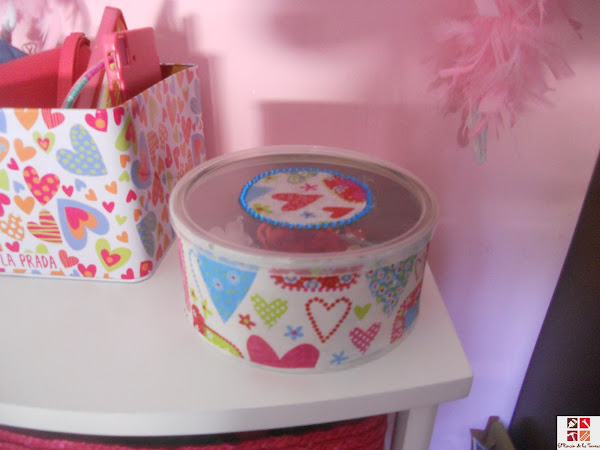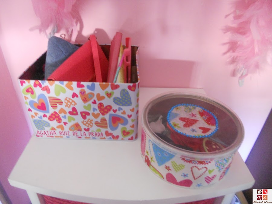 Ahora vamos con la lata de atún, estas latas son muy agradecidas porque se pueden guardar pequeñas cosas y a la vez pueden estar visibles gracias a su tapa transparente. Esta se la hice a mi hija, para que guarde sus coleteros y horquillas así es que elegí una servilleta tipo Agatha Ruiz de la Prada que los motivos son similares a otra caja que tiene.