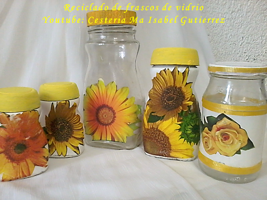 Amigas, si les han quedado frascos de vidrio de café, mayonesa o jalea, no los tiren ! Miren que lindos utensilios para guardar un sinfín de cosas podemos obtener con solo un pequeño toque. Enseguida te muestro como hacerlo, y como siempre, también te comparto el video tutorial, solo tienes que pinchar en la flecha de la imagen siguiente