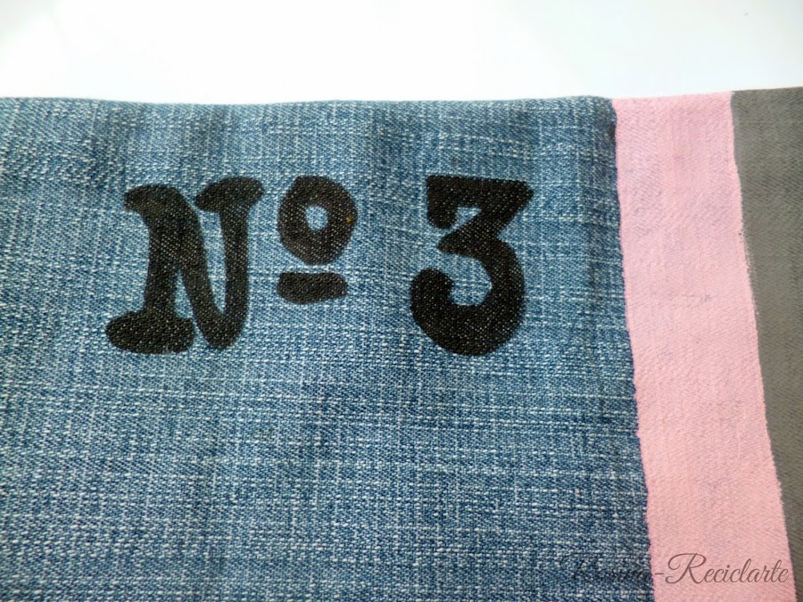 Para pintar las rayas usé látex, lo que debo confesar acartonó un poco la tela, hubiera quedado mucho mejor con la pintura indicada.