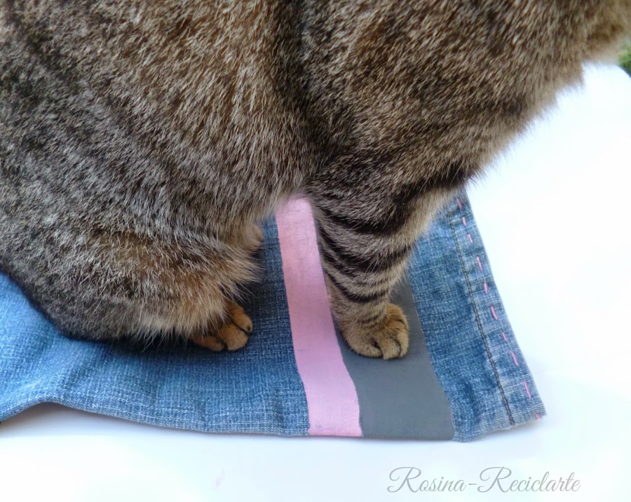 Me gustó tanto el resultado que ando desesperada buscando más jeans rotos para armar otras fundas.