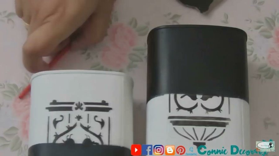 Pintaremos de negro en la parte inferior, y con la otra lata lo haremos al revés como se muestra en el video, luego retiraremos la cinta, y pondremos el stencil de nuestra elección.