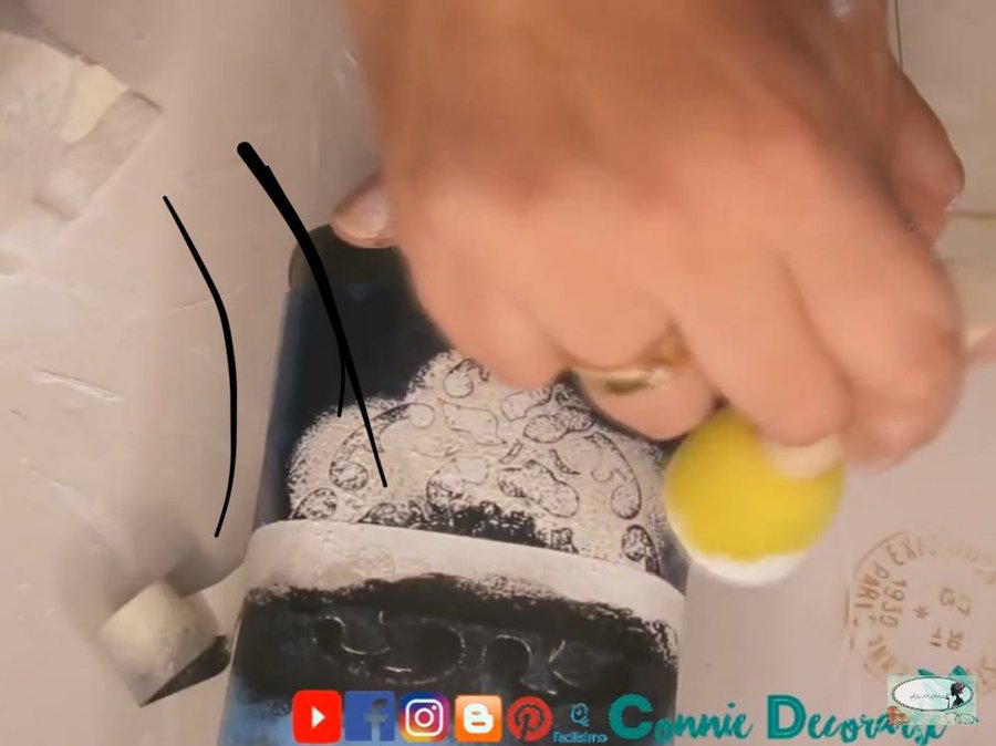 Al pintar la parte negra debemos dejarla secar muy bien, porque al aplicar la pintura blanca se puede mesclar y quedar gris.