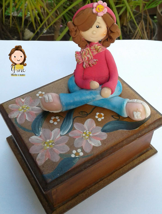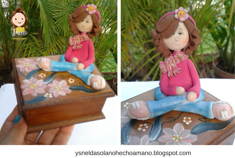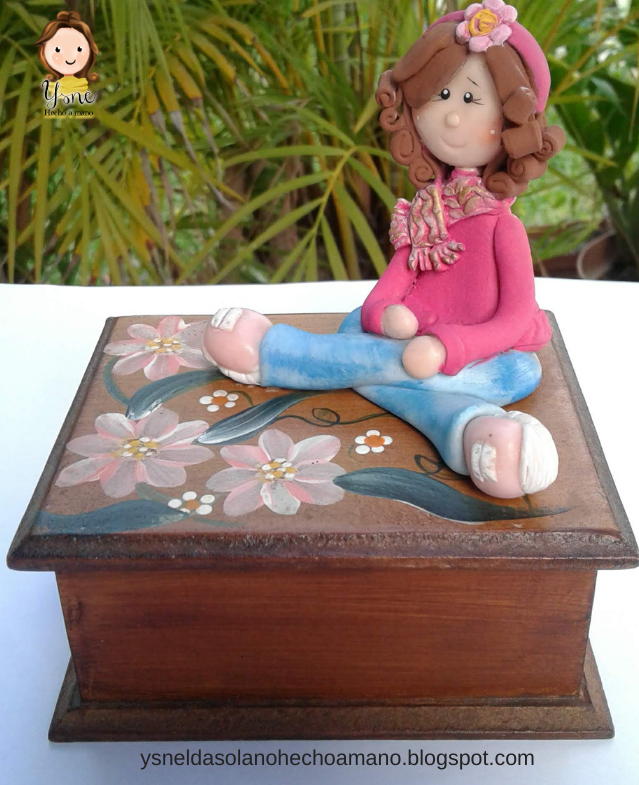 5.- Para finalizar, pegamos con silicon, la muñequita al cofre.