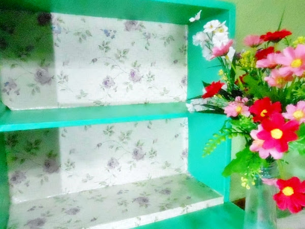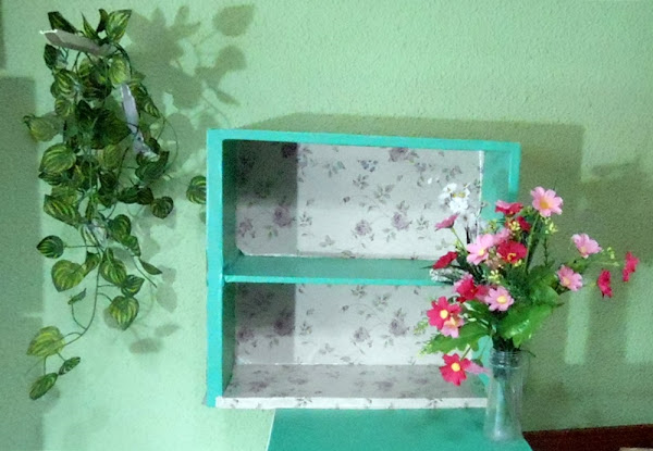 En la foto no se aprecia bien, pero os juro que el fondo es color crema, y queda tranformado en un estante muy al estilo vintage.