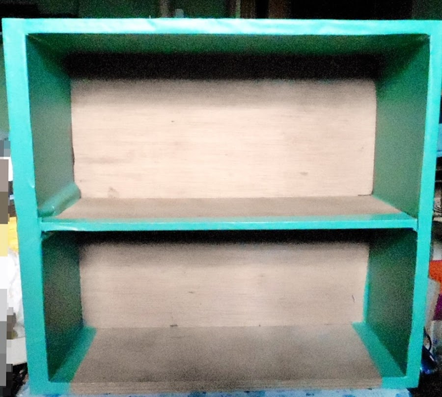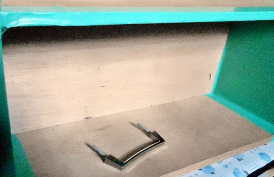 El primero era un cajón, prácticamente nuevo, sin pintar, dividido en dos por un tabique. Olvidé hacer la foto del antes, pero aquí se ve el asa que fue lo primero que quité.