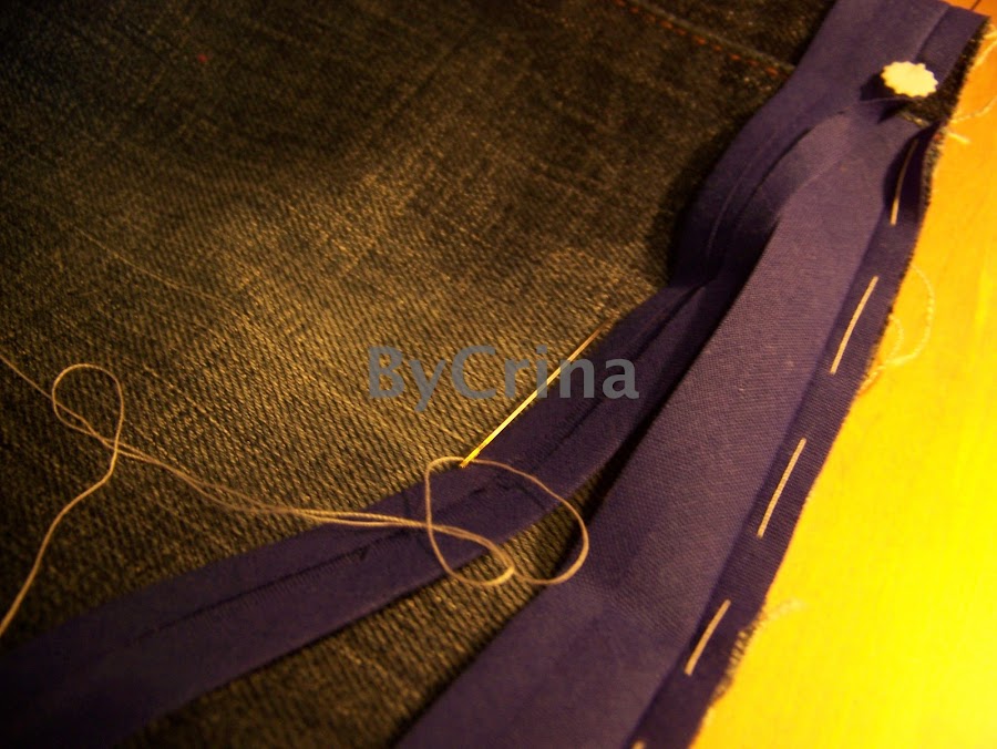Colocar el biés, es recomendable darle una pasada