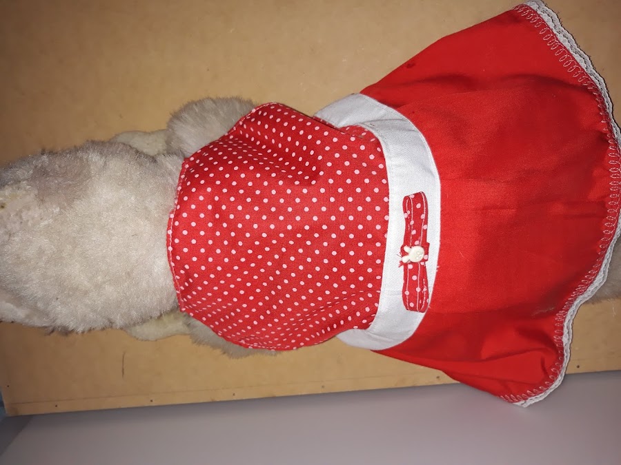 Este es un vestido para cachorra que hice con unas telitas que me regalaron.
