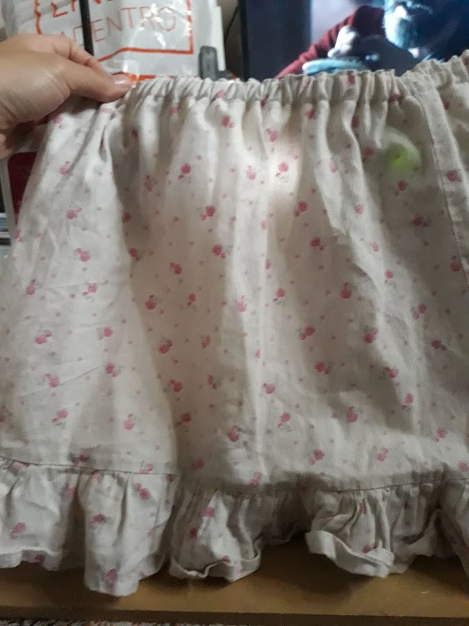 Esta faldita se la hice reciclando un vestido de cuando tenia 2 años, obvio que le quedaba chico, pero la falda era muy amplia y larga, así que corté la parte superior, una cinta gross por dentro para pasar elástico y listo. Super rápido de hacer.