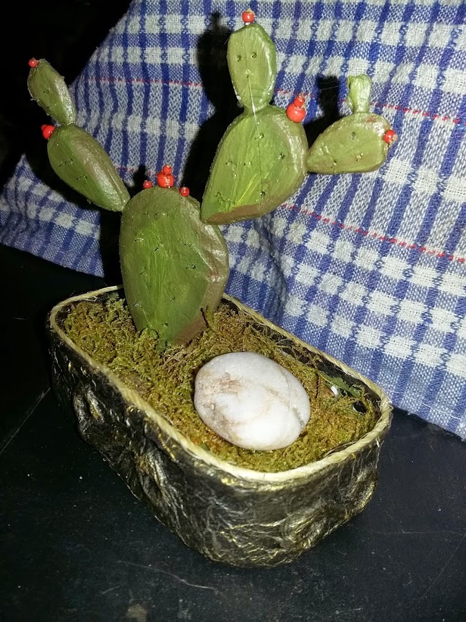 Una piedrecita traída de Santa Ana en las vacaciones de verano, un toque de musgo y listo.
