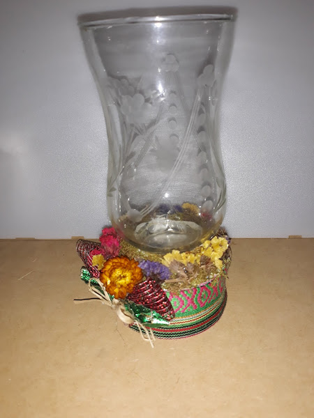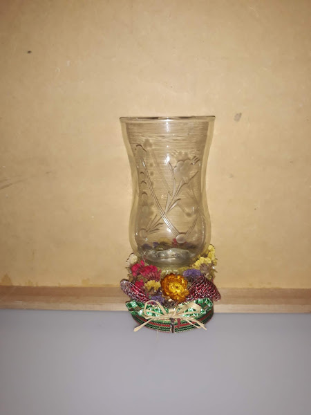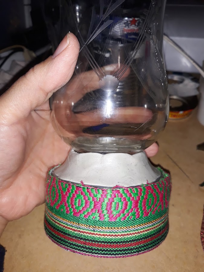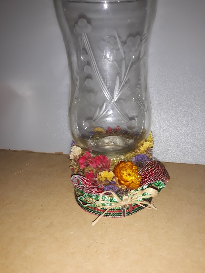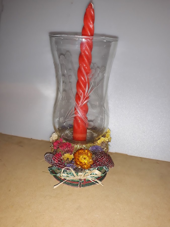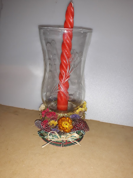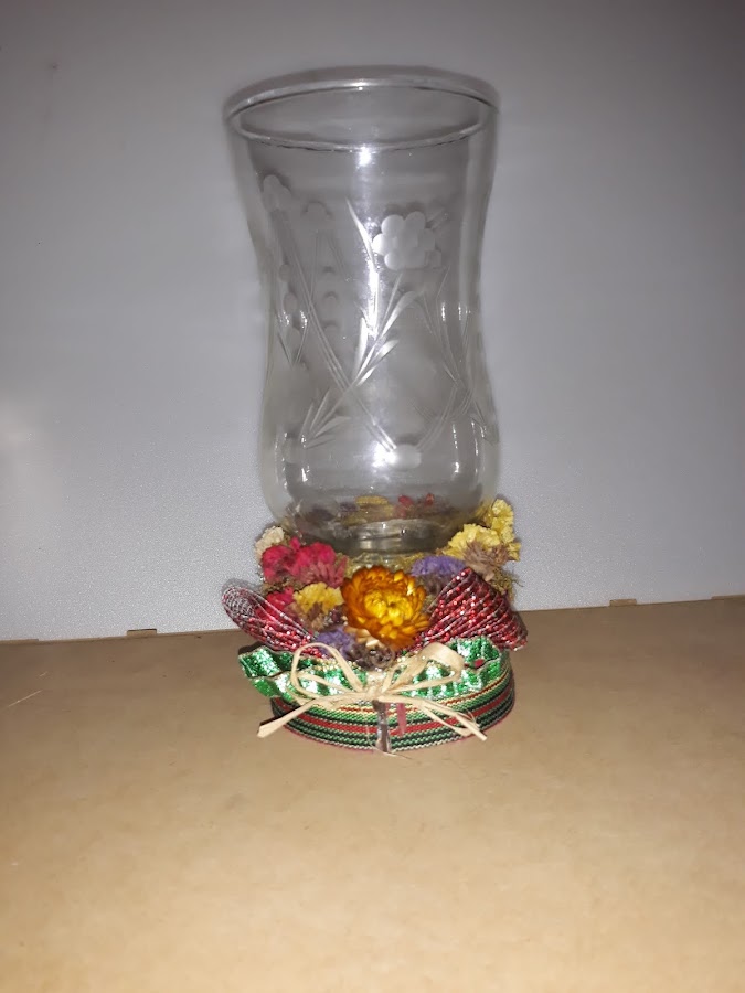 Hoy les voy a mostrar un candelabro con onda navideña que hice con la tulipa de una lámpara.