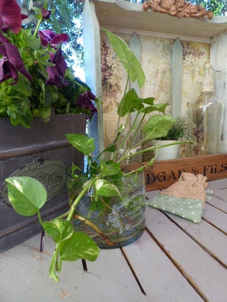 Siempre tengo esquejes de cosas en agua. Cuando pasan unas semanas y empiezan a echar raices, los planto. Estos del tarro de cristal ya están listos.....