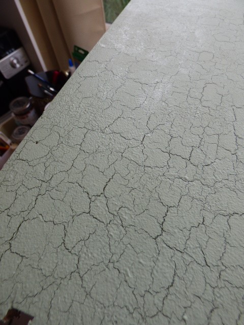Una vez seco del todo el craquelador, extiendo la pintura clarita...yo lo hago siempre con pincel de esponja.
