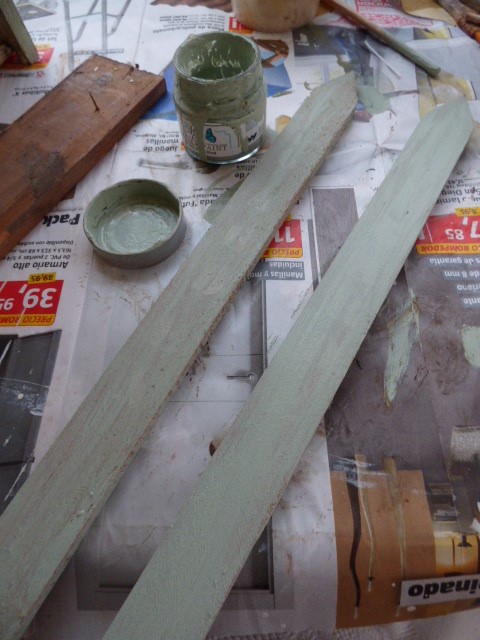 Los laterales, simplemente los he craquelado, he usado las Chalk paint Mya .....el verde oliva debajo y el verde salvia encima