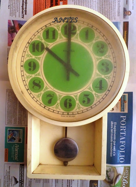 Hola¡¡ Con todo lo que os enseñé el otro día que tengo pendiente de hacer y esta semana me he ido a meter con algo en lo que ni había pensado. Este reloj lo teníamos en el salón desde hace años..... hace unas semanas se estropeó.....lo quitamos y lo sustituimos por uno idéntico. El estropeado pasó a ser parte de mi lista de pendientes. No tenía ni idea de qué hacer con él pero desde luego no l ...