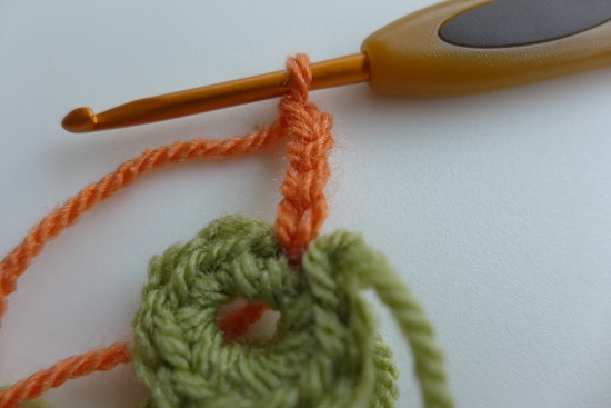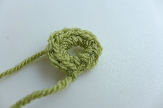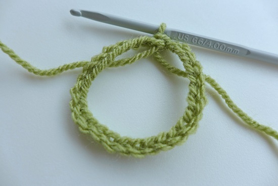 y cerrar en redondo, tenido cuidado de que la cadeneta no se quede retorcida