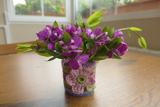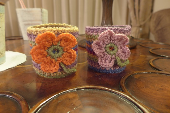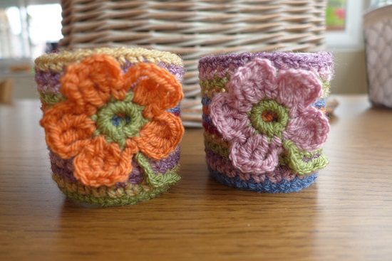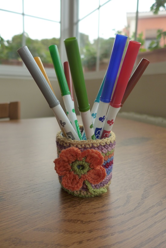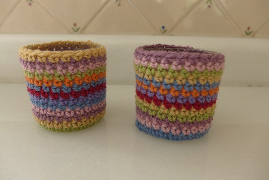 Pero he tenido la idea de decorarlos con una sencilla pero colorida funda de ganchillo, y ya habéis visto el resultado en la foto de arriba. Por si os animáis a hacer lo mismo, os quiero mostrar el tutorial con los pasos que he seguido para hacerlo. Es muy sencillo de hacer.