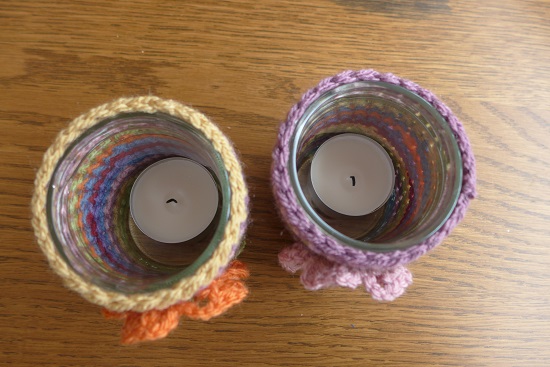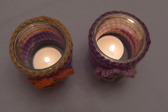 Darán una agradable luz a través del tejido de lana que hemos hecho. Aunque también podemos darles otros usos como jarroncito para un pequeño ramillete