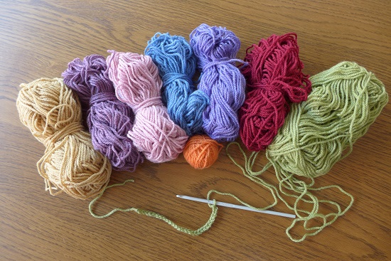 Los restos de lanas que tenía son estos, algunos de los ovillos que me sobraron de la última manta que he hecho.
