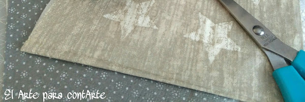 Con papel de decoupage cortamos unos motivos, en este caso unas estrellas en varios colores y tamaños. ¿Se nota que nos gustan las estrellas...? No, verdad...?!!!! :-))