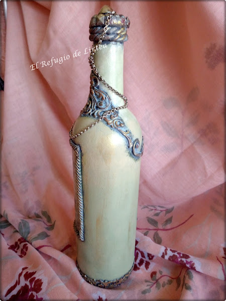 En la parte del cuello y por detrás de la botella pego otras figuras.