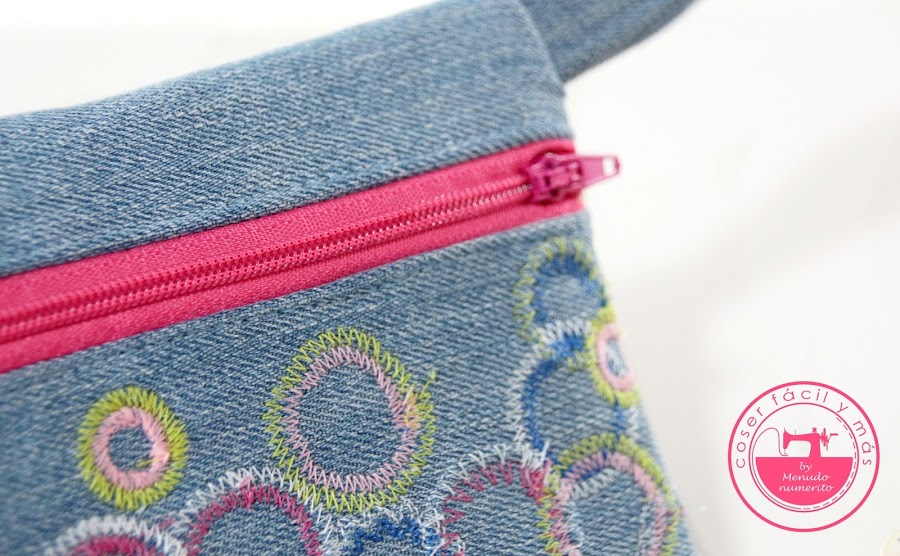 Hace unas semanas te mostré una cartera de mano vaquera en Instagram. La decoré con unos bordados que hice con el prensatelas de bordado en paralelo y luego la impermeabilicé, más que nada para proteger los bordados.