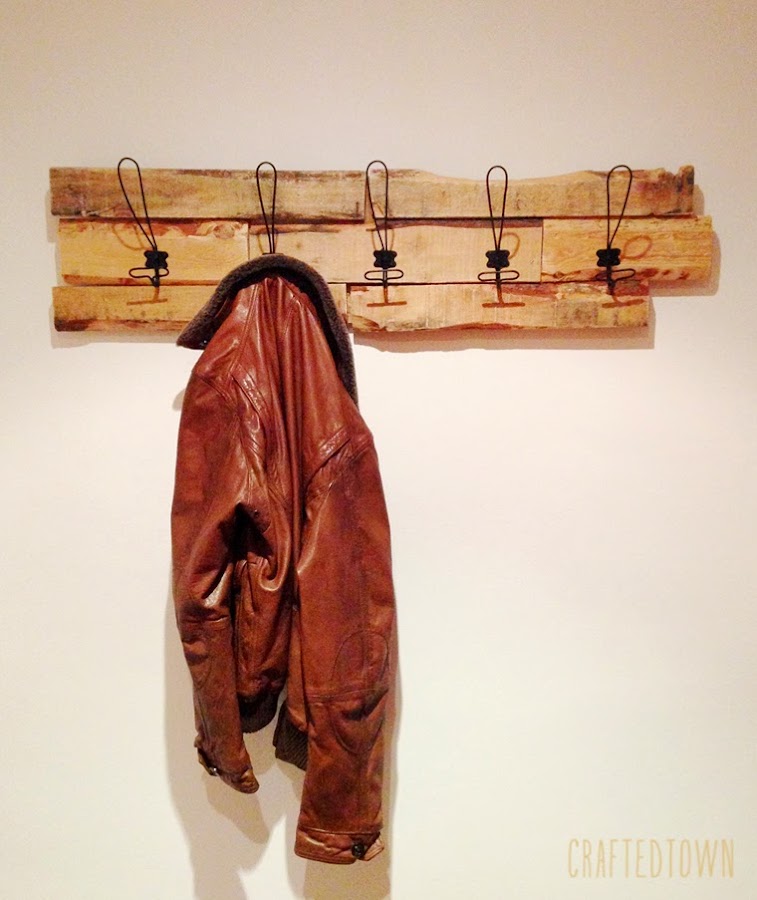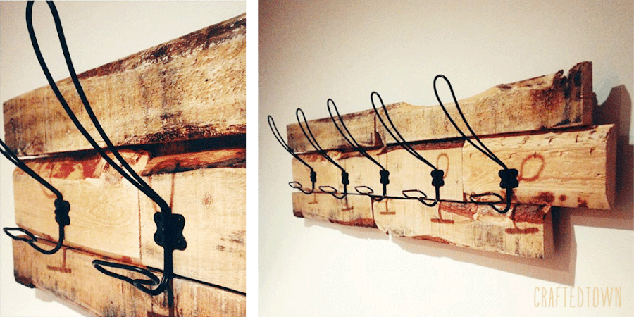 I haven"t been looking for it for a while and it has been a turn out for the books when my boyfriend gave me as a birthday present a wood base for the hooks that he had made for me with pieces of a wooden pallet that has finished their useful life. I have to own up that after making different handmade projects for friends and family it has the first time that someone has given me a handmade present and I"m so delighted with it. Here are some photos of the coat hanger finished.