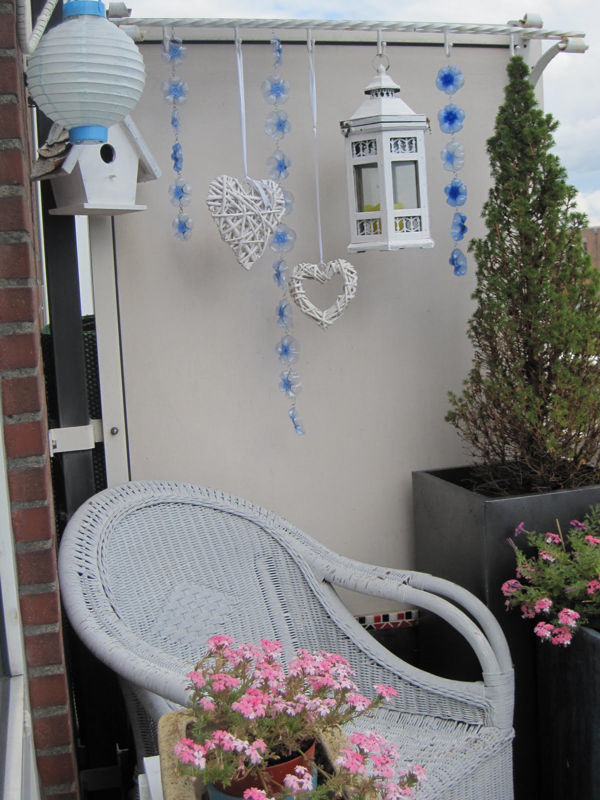 He Decidido montar un rinconcito vintage en mi jardín, me quedó super romántico y acogedor, en una tienda de segunda compré las sillitas, una mesita y farolillos, las pinté con un producto especia ...