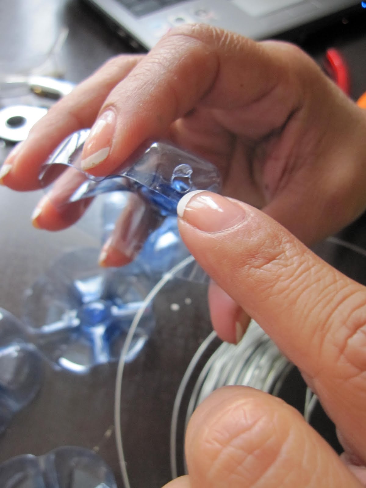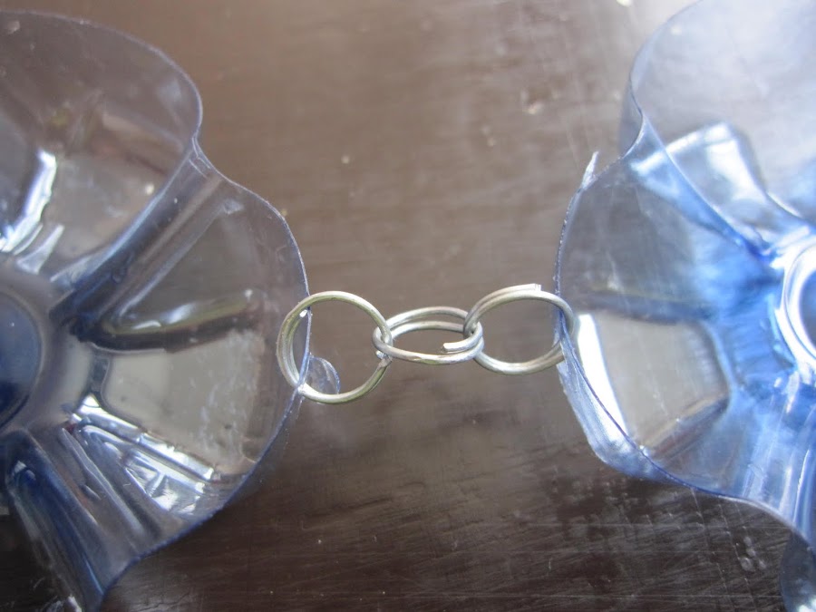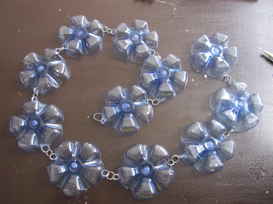 Una vez perforada unimos las figuras con las argollas 0 clip, hasta tener el largo deseado de la primera tira de ""flores""